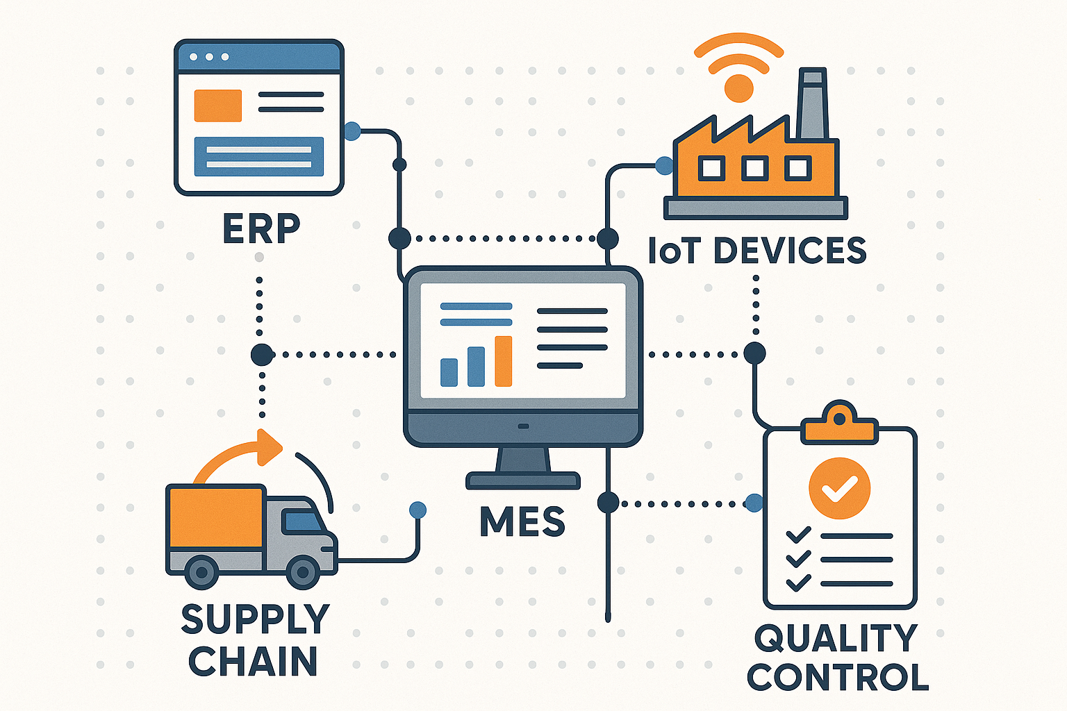 MES bridges the gap between ERP and shop floor operations, providing real-time visibility into production processes.