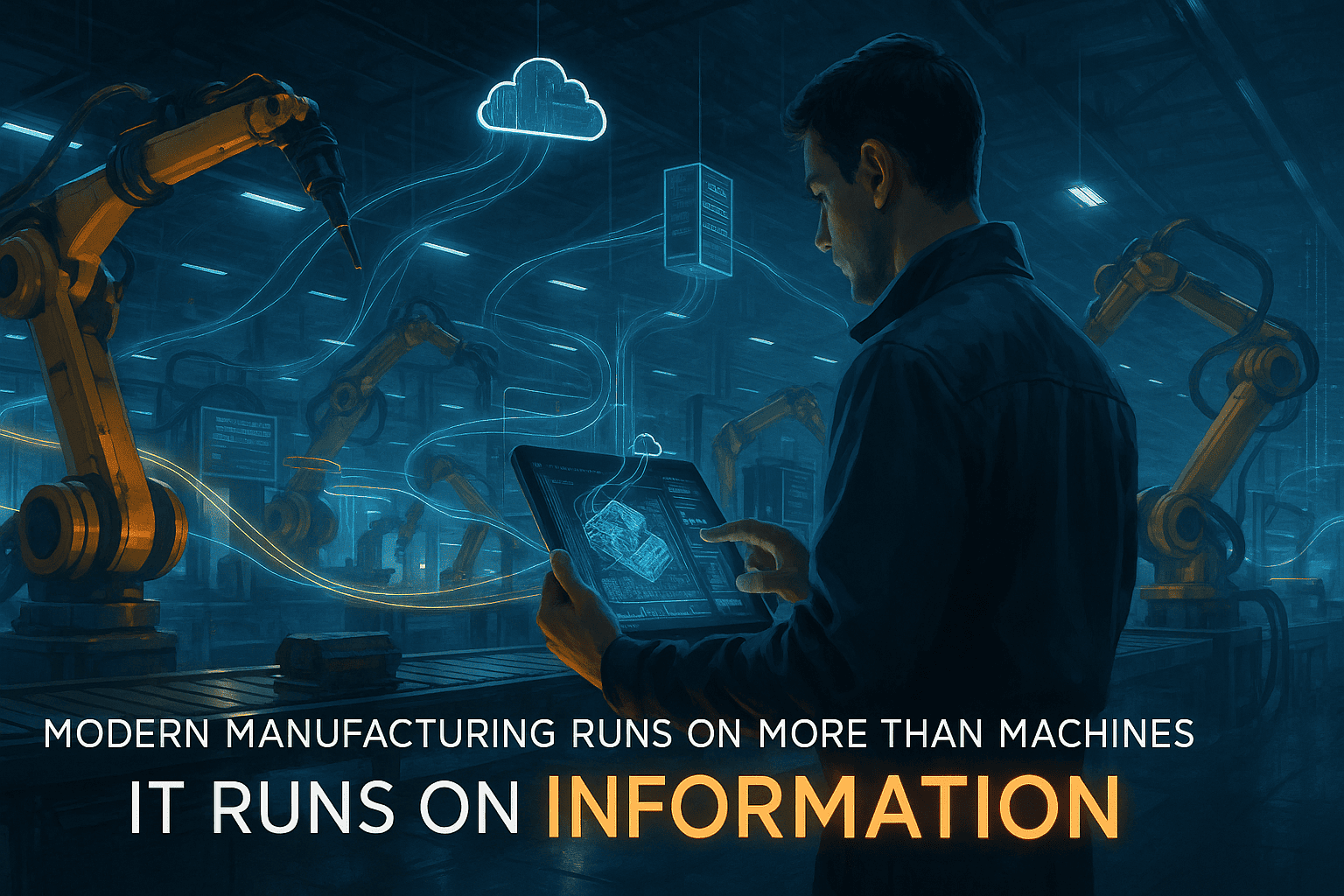 This isn’t science fiction, it’s the reality of modern manufacturing in 2025. While we often focus on the impressive machinery, robotics, and automation that power today’s factories, there’s an invisible force that’s equally critical: information. Modern manufacturing runs on more than machines; it runs on information, and understanding this shift is crucial for any manufacturer looking to stay competitive.